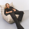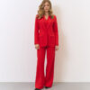 Straight-cut trousers with pleats and a high waist. Front side pockets. Fastened with a zipper and hoop with belt loops.