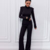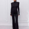 An elegant black turtleneck made from bandage fabric with accentuated shoulders — the perfect blend of style and daring femininity. The softly figure-hugging material highlights the silhouette, creating a refined shape, while the structured shoulders add a modern, bold touch. This turtleneck effortlessly serves as a base for both office and evening looks, bringing confidence and style to every detail.