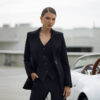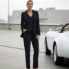 A classic black blazer with wide lapels and long sleeves. It is slightly tailored to emphasize the figure, featuring an elegant, minimalist design without unnecessary details. Perfect for creating a smart-casual or business look.