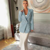 Double-breasted jacket in luxury tweed Do not chemical clean. Do not iron. 30° machine wash delicate. Low heat. Do not bleach.
