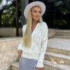 The delicate top is made of cotton thread, a perfect choice for pairing with dresses or jeans.