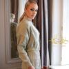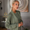 Button-up mini cardigan, 47 cm in length, made from soft natural cotton fabric. Can be paired with tops, skirts, and trousers.