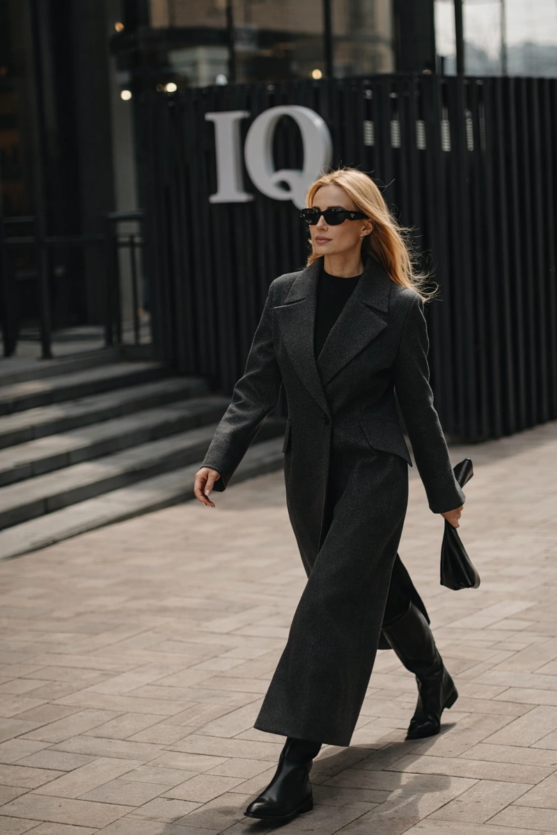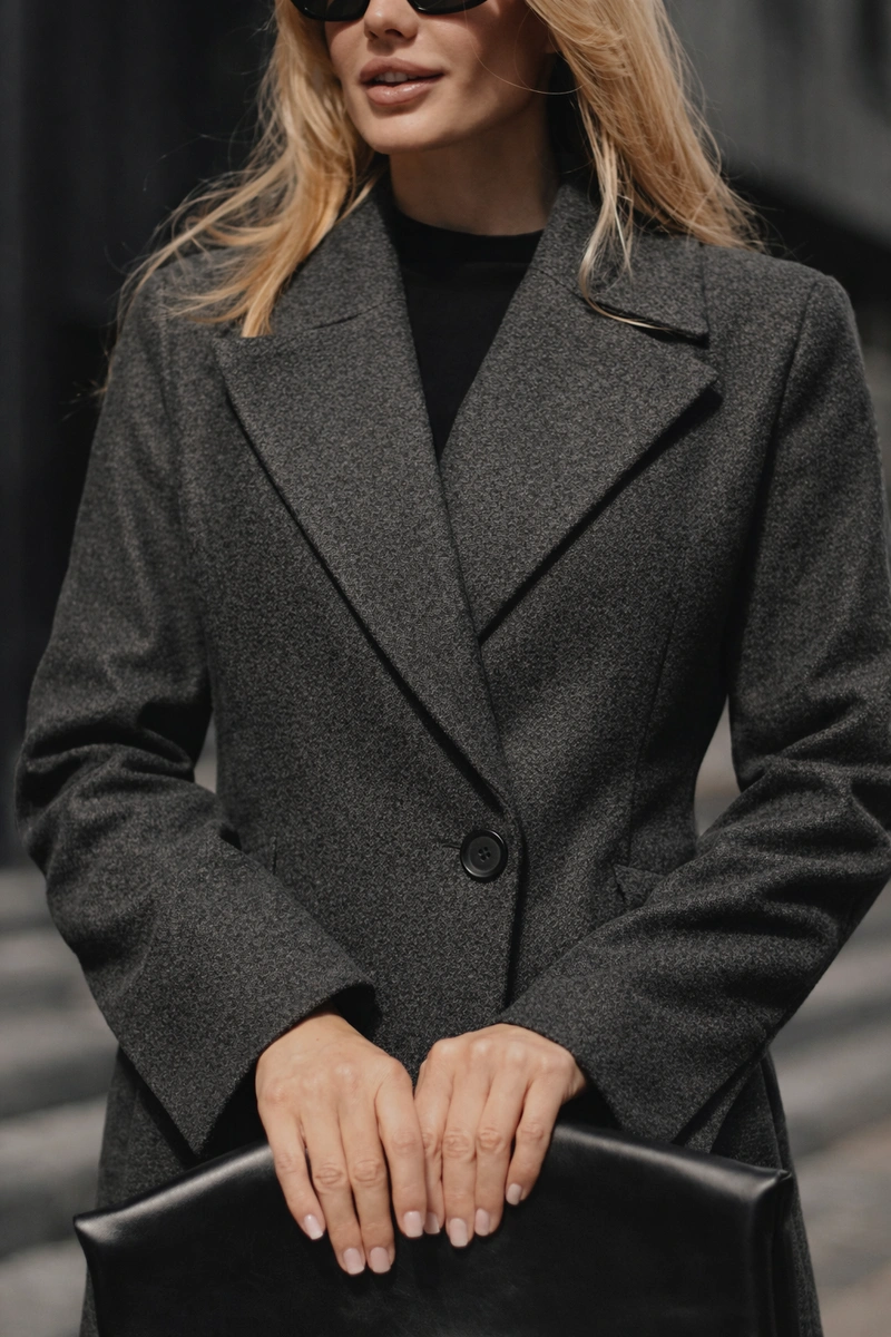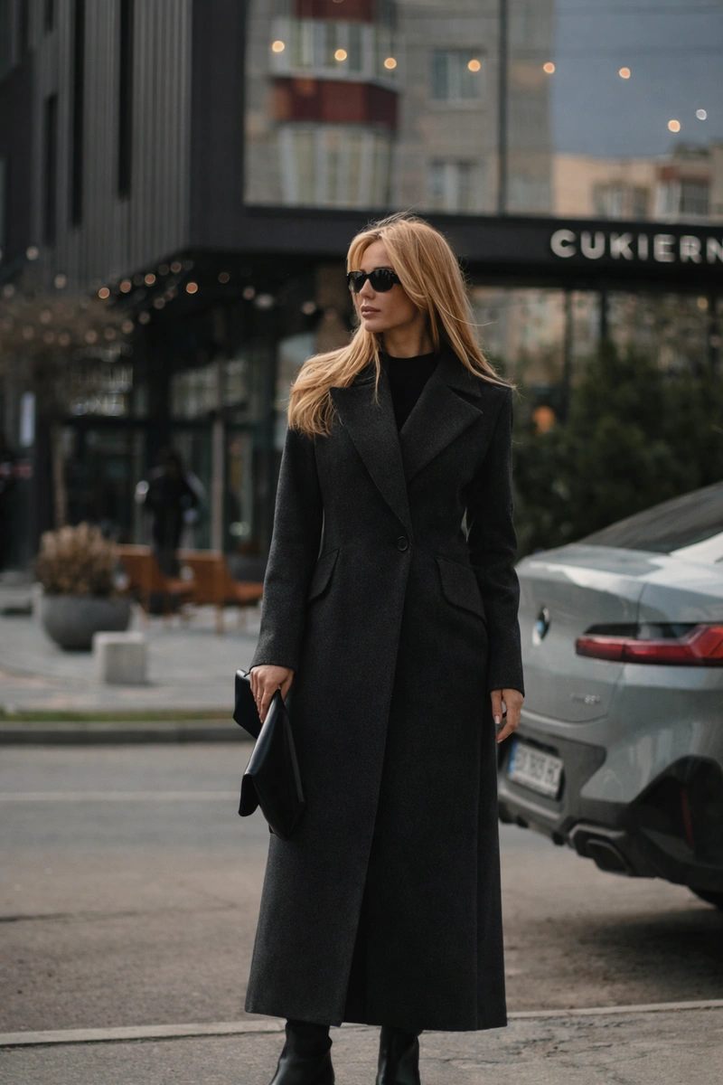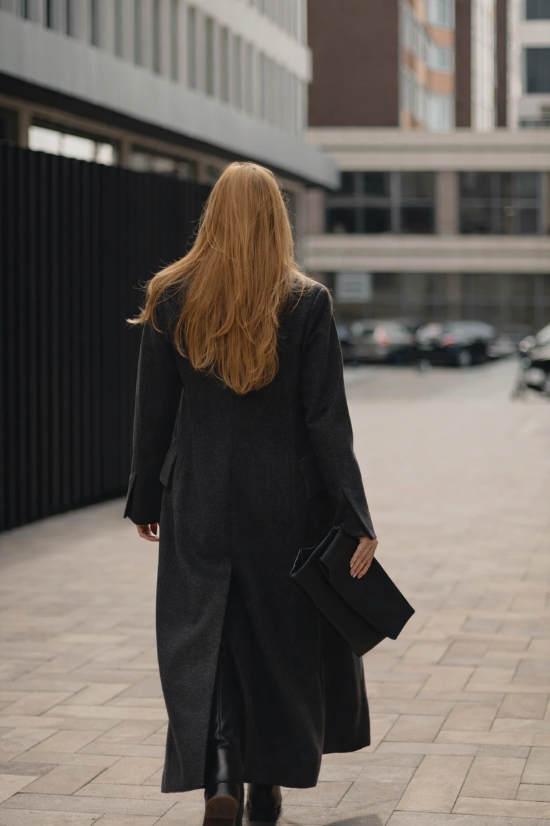 This coat is the embodiment of modern classic style, where clean lines meet absolute femininity. It is designed for those who appreciate the aesthetics of “quiet luxury” and impeccable comfort.