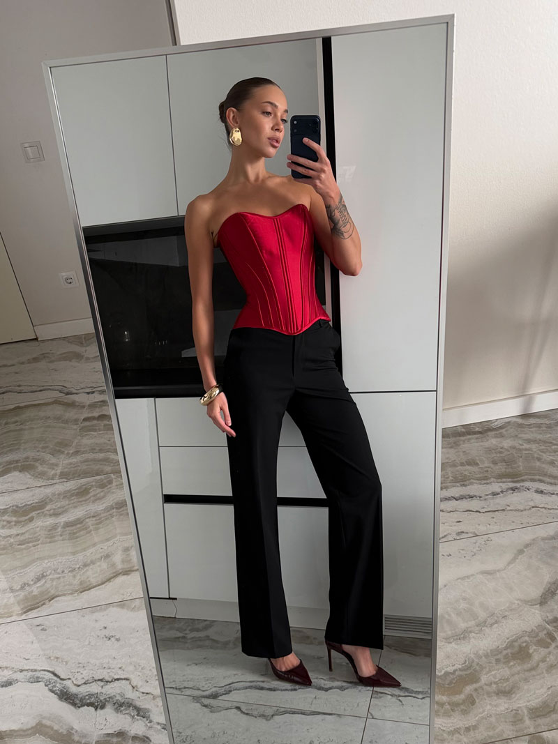 • Classic straight-leg cut – flatters the figure and visually elongates the silhouette