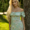 This model will delight you with its elegant lines and delicate details. There is a ruffle decoration on the chest of the dress, which adds sophistication and sophistication to the look. You can wear it either on your shoulders or lowered to them. In any case, the dress will look very elegant and feminine. Material-soft.
