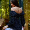 The dress has a voluminous underskirt, which makes the figure more refined.