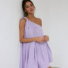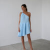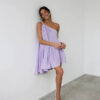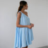 Light airy dress made of natural muslin. Trendy asymmetrical style