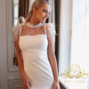 The dress is a mid-length, tailored silhouette that accentuates the figure. The design is complemented with a polka dot mesh and feathers, adding an evening touch to it. Our stylists recommend pairing it with classic pumps and statement earrings to complete the look.
