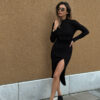 An elegant dress made from high-quality knit fabric that highlights your figure and adds a stylish touch to your look. The long sleeves and a graceful slit create a perfect balance between sophistication and allure.