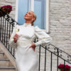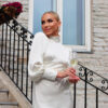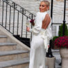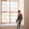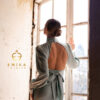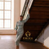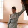 Thick fabric with a glossy shine is made of synthetic fiber.