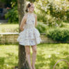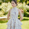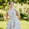 Step into effortless elegance with the Florania dress — a timeless piece that embodies femininity, grace, and the serene beauty of summer. Crafted with exquisite attention to detail, this dress features a sophisticated halter neckline, a cinched waist that flatters the silhouette, and a tiered skirt that flows with airy movement.