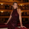 This luxurious maxi gown dazzles with thousands of sequins, creating a runway-worthy glow with every movement. The perfectly tailored silhouette drapes smoothly along the body, highlighting femininity and refined elegance. The deep open back adds a touch of sensual sophistication, while the long, flowing line of the dress creates an elongated, graceful look. This gown is a true statement piece for those who want to shine.