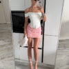 A stunning mini skirt adorned with voluminous 3D roses all over its surface. Crafted in a versatile white shade, it beautifully accentuates the figure thanks to its form-fitting cut. The soft sheen of the fabric and delicate texture make it a perfect choice for special occasions, photo shoots, or chic evening outings. Pairs perfectly with corsets, tops, and blazers.
