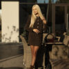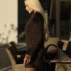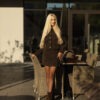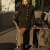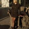 The straight cropped jacket, with its refined fabric texture and bold decorative buttons, adds status and structured elegance to the look. The mini skirt perfectly highlights femininity, creating a harmonious and balanced silhouette.