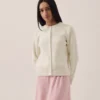 An elegant cardigan crafted from ultra-soft lambswool, designed to provide gentle warmth and exceptional comfort. Its refined, slightly fluffy texture gives the piece a luxurious feel while remaining effortlessly wearable.