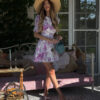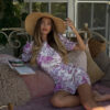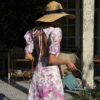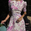Details: puff sleeves, open back, floral print