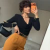 This bodysuit pairs effortlessly with statement skirts, high-waisted trousers, and classic tailored blazers. Perfect for both striking evening looks and elevated daytime styling.