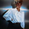 The Valencia satin blouse with accentuated shoulders is the epitome of modern elegance.