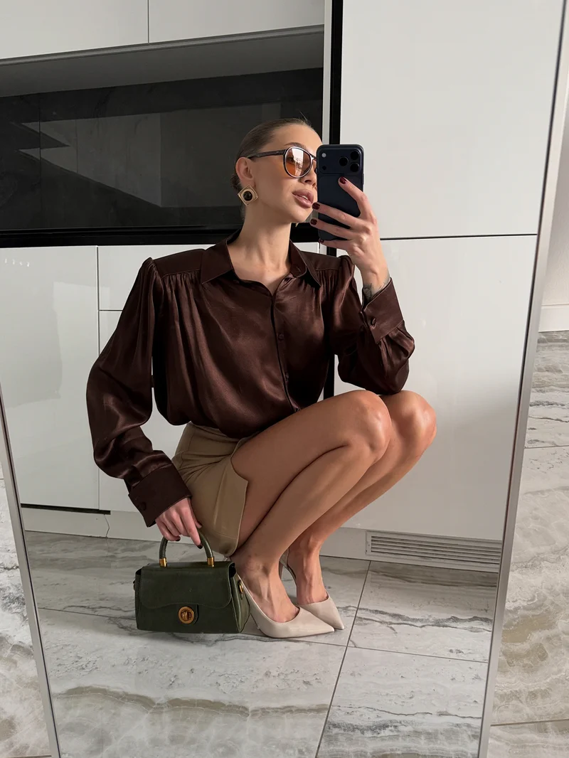 Mini skirt with two neat slits – a timeless model that will become a staple in your wardrobe. Made from suit fabric, synthetic fibers make the material durable and comfortable to wear. It comes with a lining.