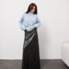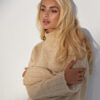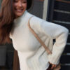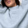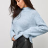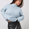 A warm, soft sweater made from premium quality natural wool yarn. Smooth and stable knit. The hemline and sleeves feature relaxed vertical stripes for added decoration.
