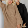 This elegant midi-length sweater dress is made from soft semi-wool yarn, offering a comfortable fit.