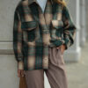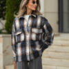 Women’s oversized plaid shirt featuring a classic collar, patch pockets, and metal snap closures. Made from dense fabric, ensuring comfort and style. Perfectly paired with basic trousers and accessories, creating a stylish and cozy look.