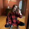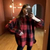 The classic plaid comes in two expressive shades: red and yellow, adding character and warmth to the look.