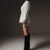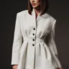 A wool mini skirt designed to match the blazer — sleek and stylish. It maintains balance and harmony in a total look, perfectly complementing the jacket to create an elegant and refined outfit.