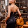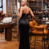 This floor-length corset evening gown is the embodiment of radiant elegance.