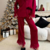 Details: The cuffs and pant legs are decorated with removable natural feathers, adding sophistication and making the look airy and stylish.