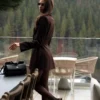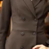 The double-breasted closure accentuates the waist, while the deep chocolate shade adds warmth and a touch of luxury. The dense fabric holds its shape beautifully, ensuring a flawless appearance in any setting.