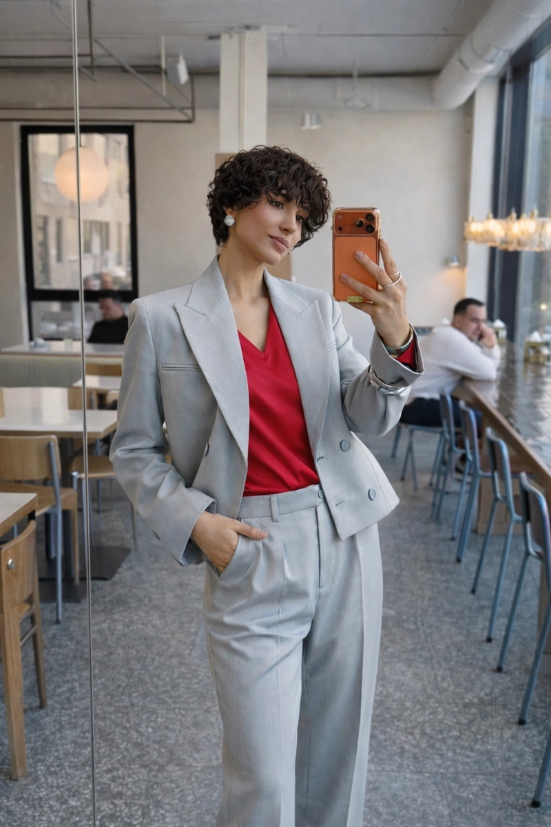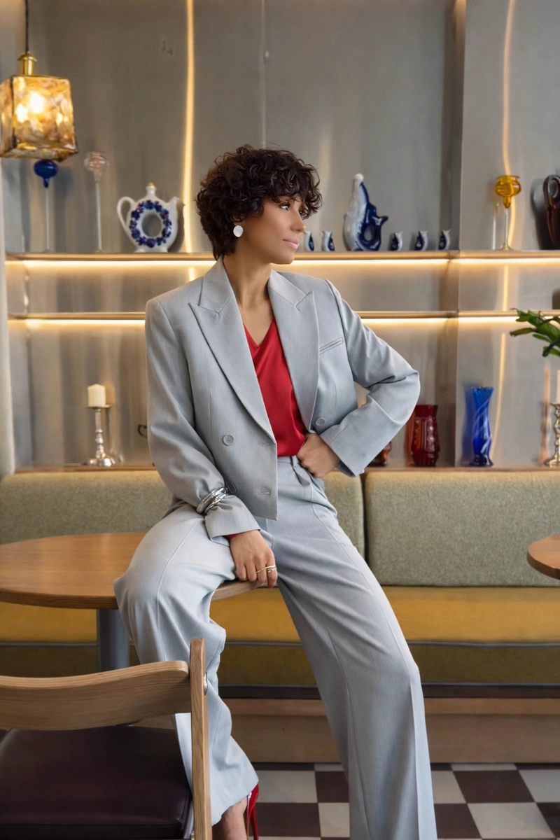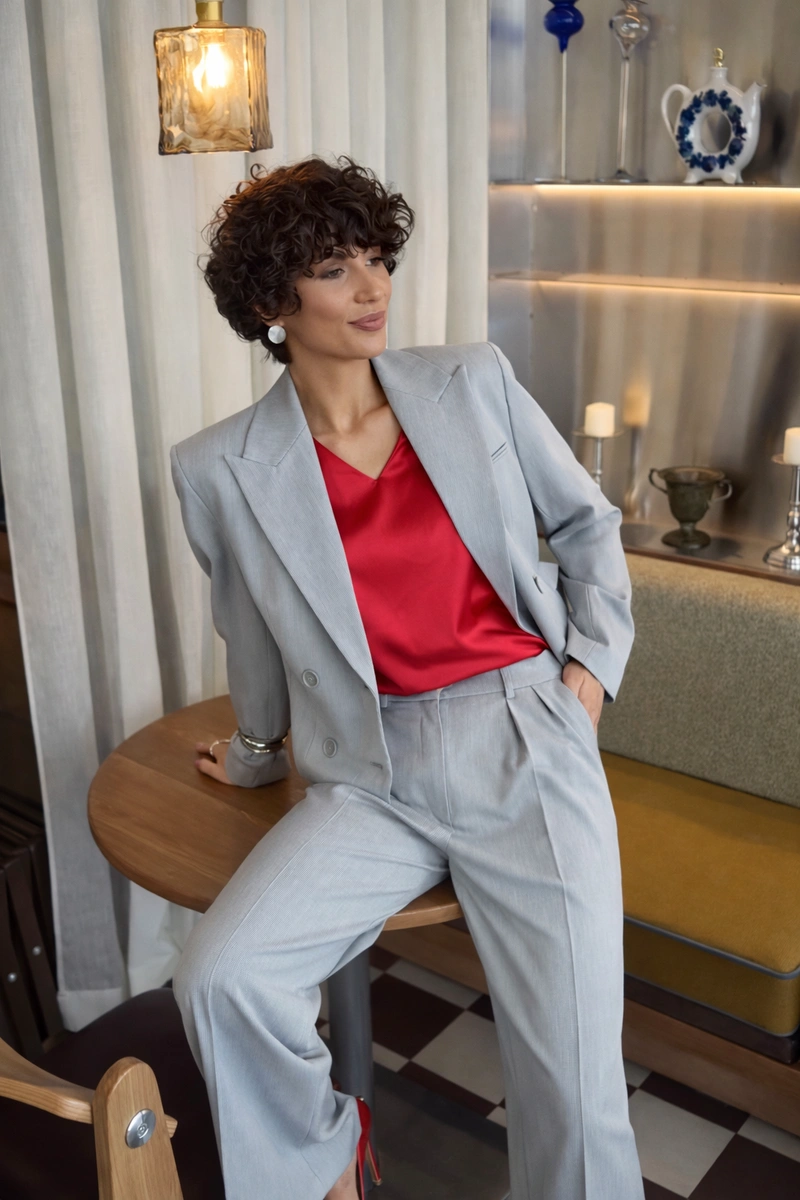 A modern take on timeless classics — cropped blazer and palazzo trousers designed for confident, elegant women. The blazer highlights the waist and elongates the silhouette, while wide-leg trousers flow gracefully with every step, ensuring comfort and ease.